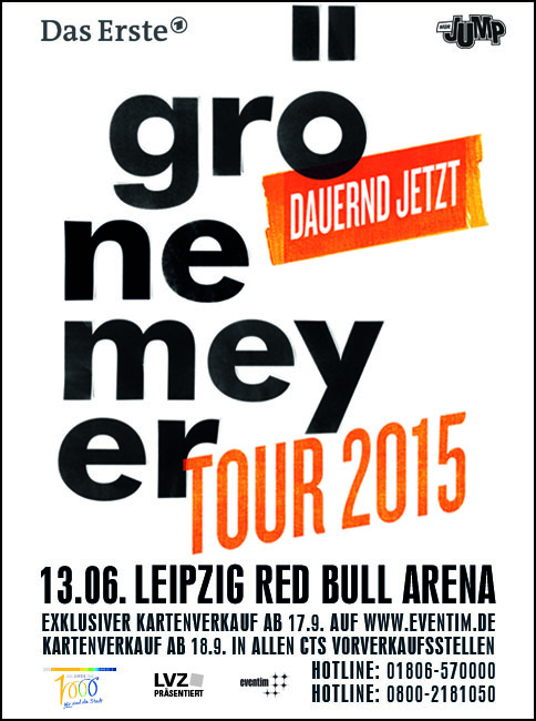 Die Herbert Grönemeyer-Tour 2015 wird präsentiert von DAS ERSTE und den Popwellen der ARD (SWR3, Bayern3, HR3, JUMP, NDR2, Radio1, Antenne Brandenburg, WDR2).