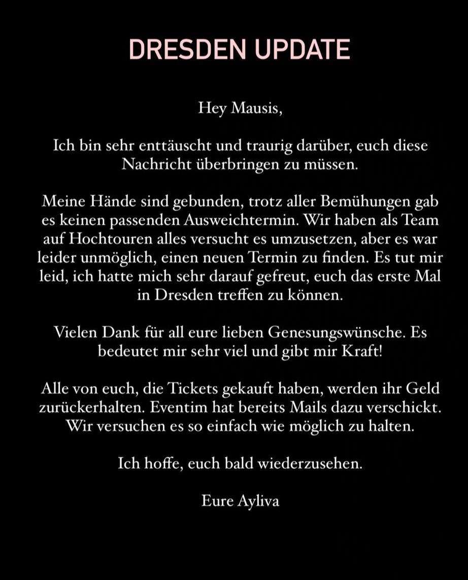 05.07.2024 - AYLIVA Konzert am 05.07.24 in Dresden ersatzlos abgesagt!