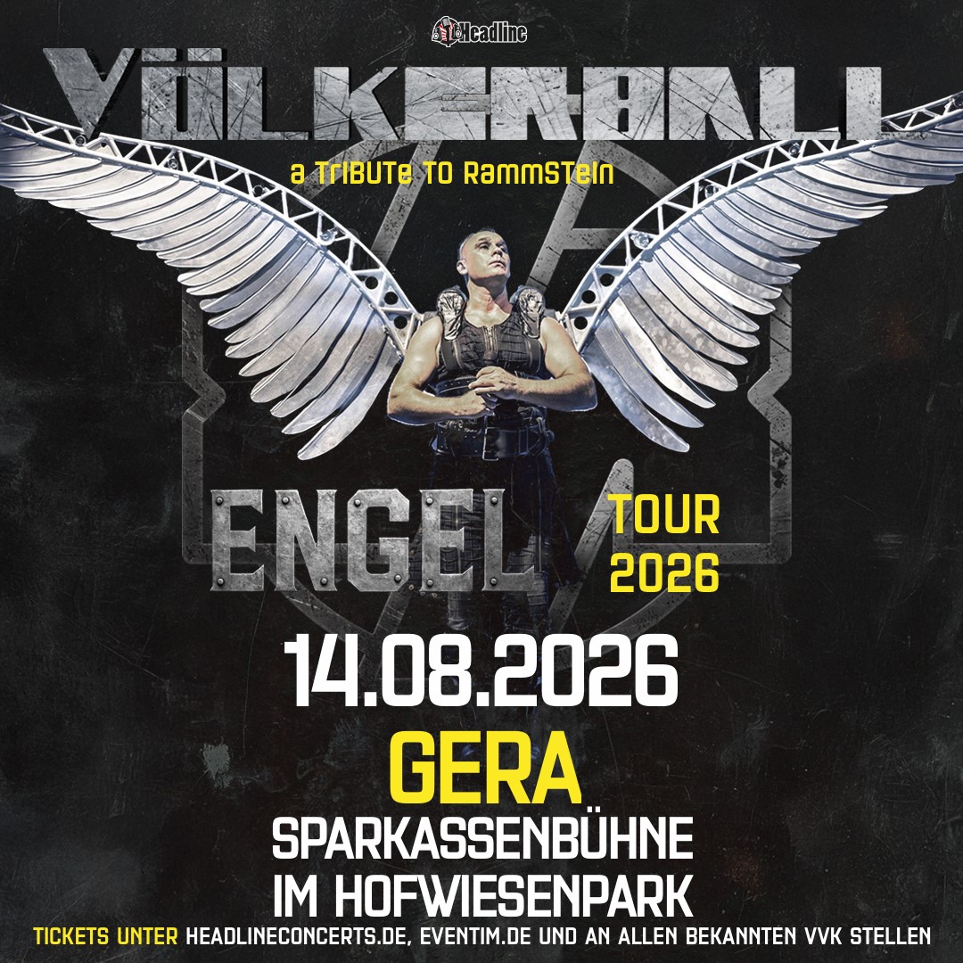 Auch 2026 setzen Völkerball wieder neue Maßstäbe in Sachen Showdesign und Originaltreue zu ihrem großen Vorbild: Bekannte und beliebte Requisiten wie der Feuerbogen und der Flammenwerfer im Song ‚Mein Teil’ wechseln sich ab mit neuen Elementen wie dem überdimensionalen, Konfetti sprühendem Phallus im Song ‚Pussy‘. Und gemäß dem Namen ‚Engel‘-Tour erhebt sich René -alias Till- mit mächtigen Flügeln in die Lüfte, hoch bis ins Dach der Bühne - um dann im brutalen Pyrogewitter das große Finale der 2,5 Stunden dauernden Tributeshow einzuleiten.